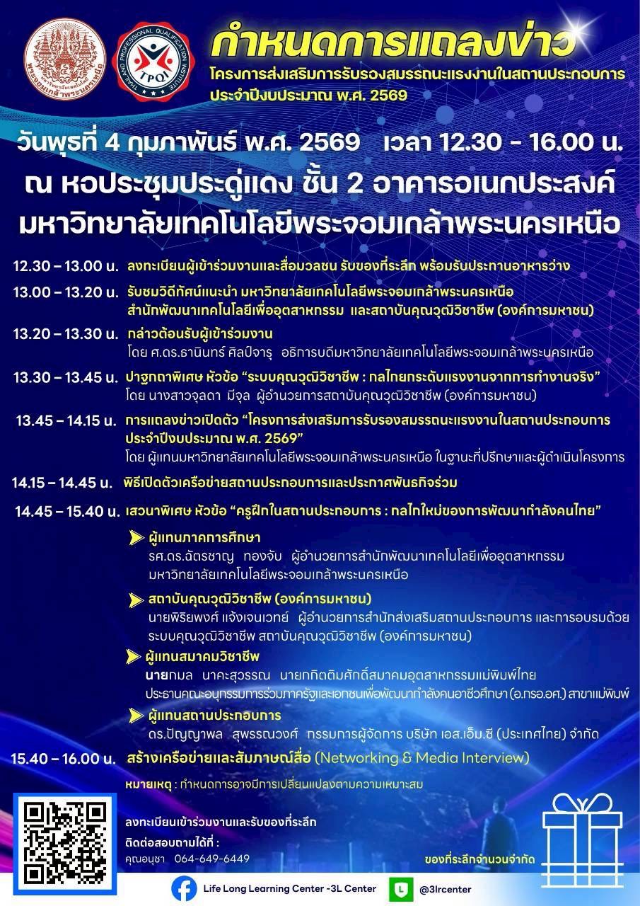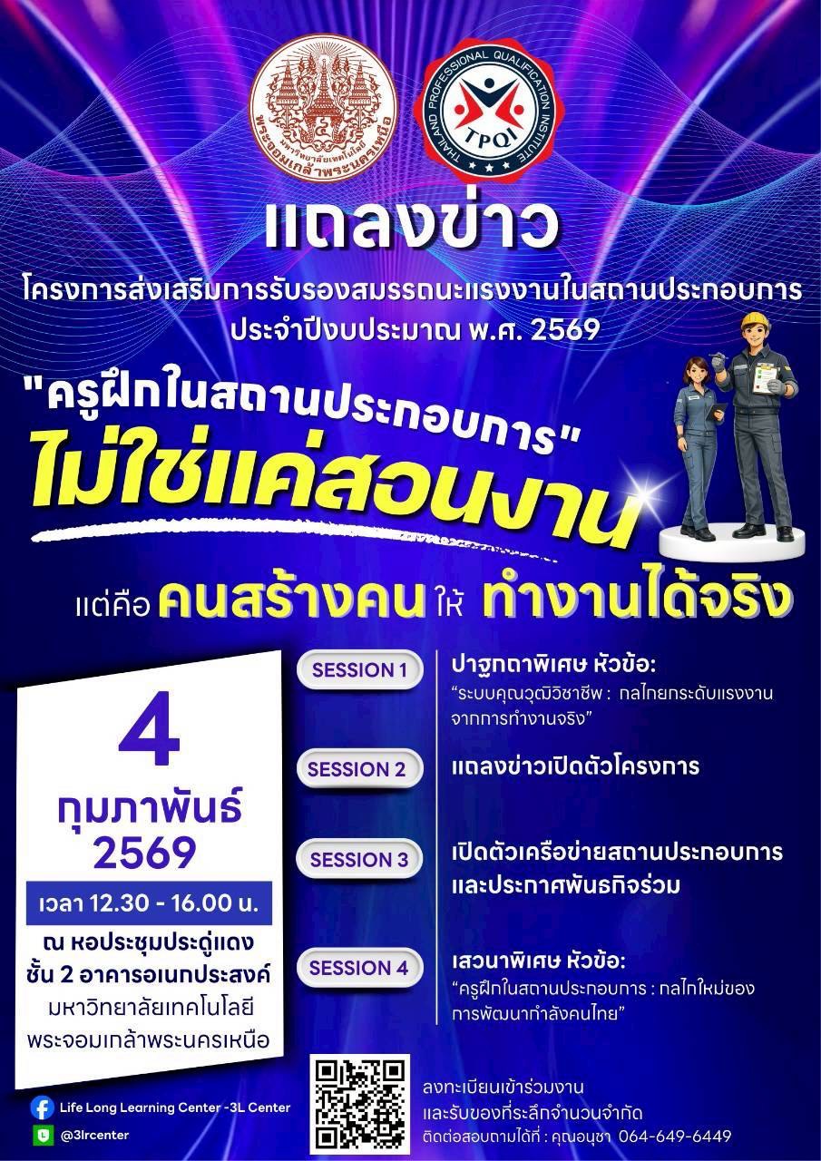ในวันพุธที่ 4 กุมภาพันธ์ 2569 เวลา 12.30-16.00 น.