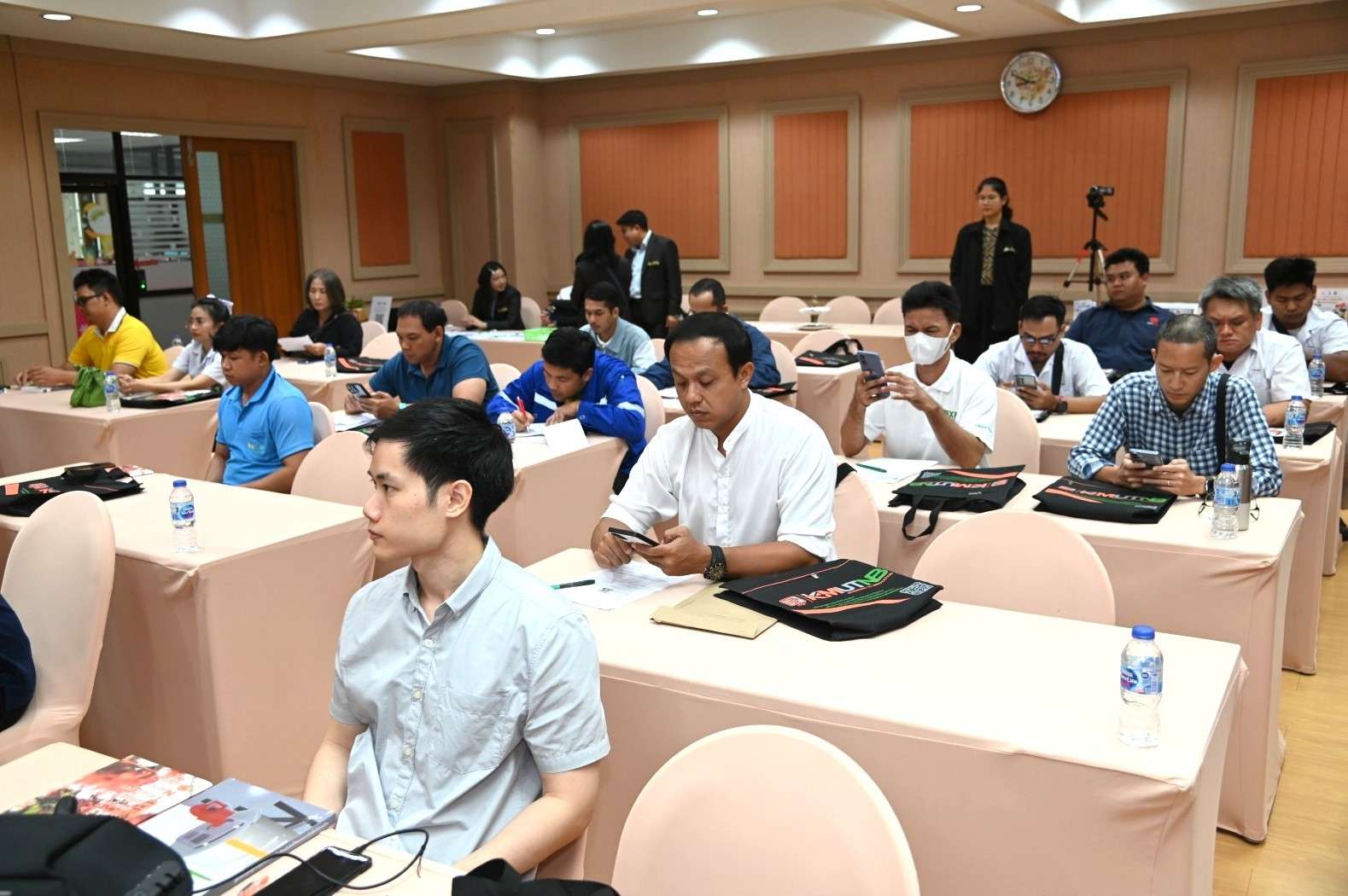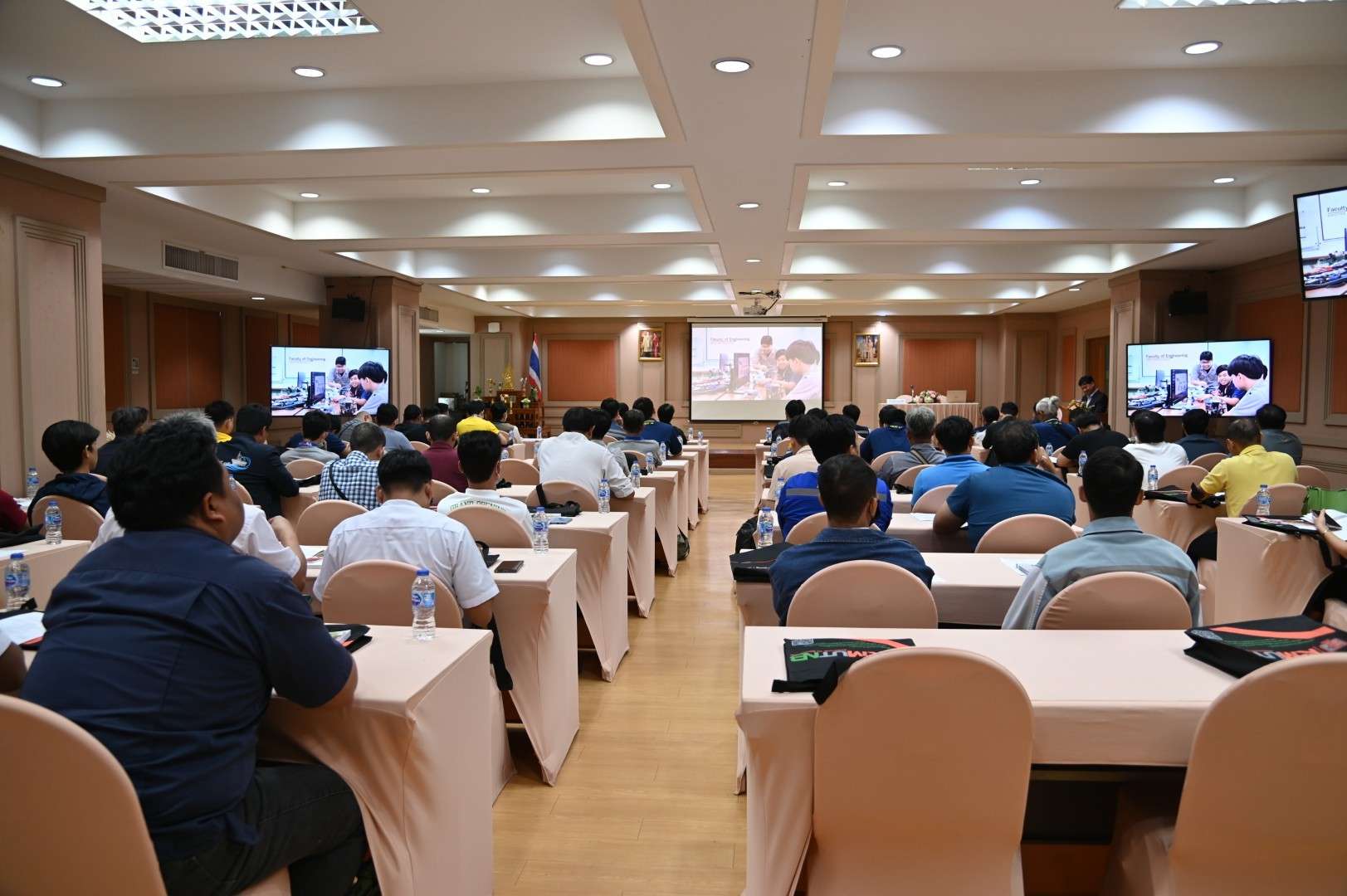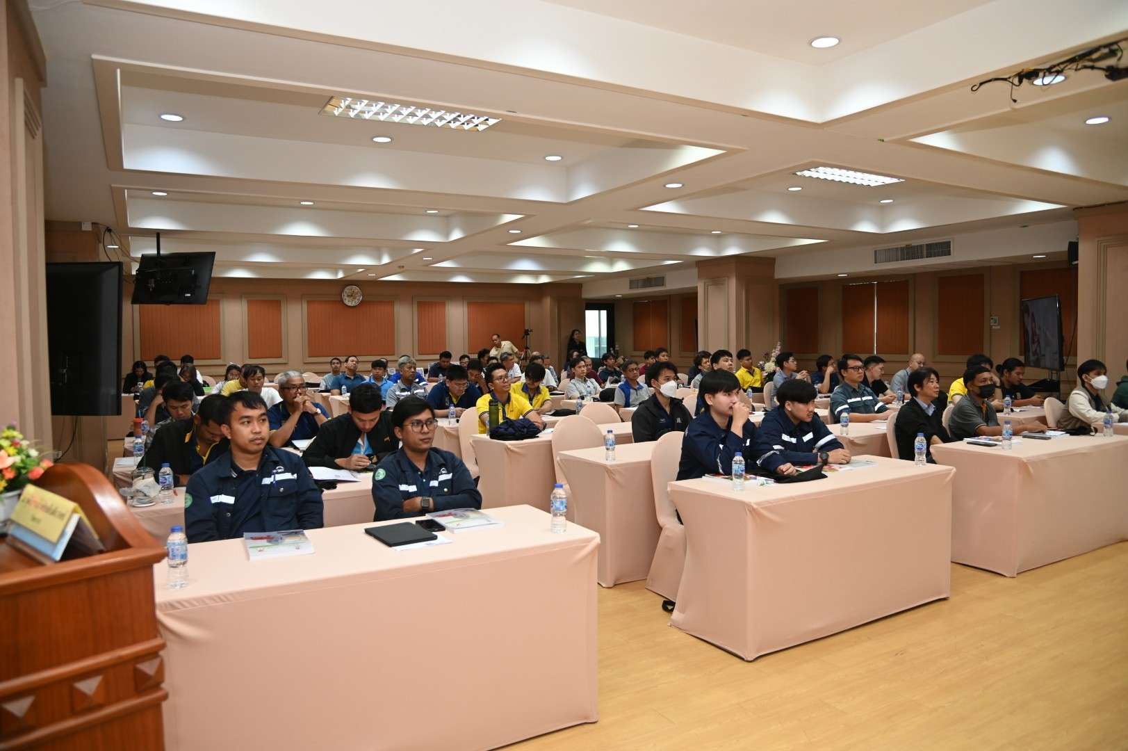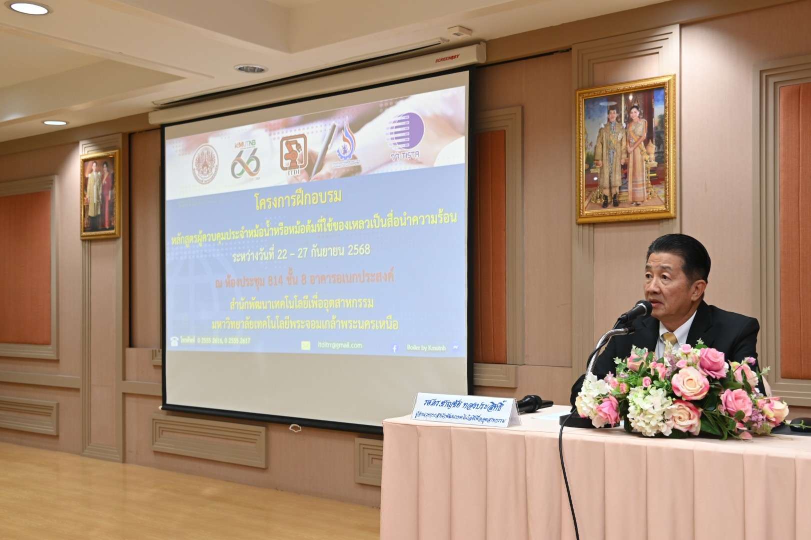 รองศาสตราจารย์ ดร.ชาญชัย ทองประสิทธิ์ ผู้อำนวยการสำนักพัฒนาเทคโนโลยีเพื่ออุตสาหกรรม มหาวิทยาลัยเทคโนโลยีพระจอมเกล้าพระนครเหนือ เป็นประธานในพิธีเปิดโครงการฝึกอบรมหลักสูตร “ผู้ควบคุมประจำหม้อน้ำหรือหม้อต้มที่ใช้ของเหลวเป็นสื่อนำความร้อน” โดยมีวัตถุประสงค์เพื่อให้ความรู้เกี่ยวกับโครงสร้างและหลักการทำงานของหม้อน้ำหรือหม้อต้มที่ใช้ของเหลวเป็นสื่อนำความร้อนตลอดจนอุปกรณ์ส่วนควบคุมต่าง ๆ เพื่อให้ผู้เข้าฝึกอบรมมีความสามารถในการควบคุมการใช้หม้อน้ำหรือหม้อต้มได้อย่างปลอดภัย และมีประสิทธิภาพ รวมถึงตระหนักถึงอุบัติเหตุอันตรายที่อาจเกิดขึ้นของหม้อน้ำหรือหม้อต้มและวิธีการแก้ไขป้องกันอุบัติเหตุดังกล่าว ตลอดจนทราบถึงหน้าที่ความรับผิดชอบของผู้ควบคุมหม้อน้ำหรือหม้อต้มที่จะต้องรับผิดชอบตามกฎหมายที่เกี่ยวข้อง ผู้ที่ผ่านการฝึกอบรมและผ่านการสอบมาตรฐานสามารถนำวุฒิบัตรไปยื่นขอขึ้นทะเบียนเป็นผู้ควบคุมประจำหม้อน้ำต่อกรมโรงงานอุตสาหกรรม กระทรวงอุตสาหกรรมได้ ซึ่งมีกำหนดการฝึกอบรมระหว่างวันที่ 22-27 กันยายน 2568 ณ ห้อง 814 ชั้น 8 สำนักพัฒนาเทคโนโลยีเพื่ออุตสาหกรรม อาคารอเนกประสงค์ มหาวิทยาลัยเทคโนโลยีพระจอมเกล้าพระนครเหนือ โดยมีพิธีเปิดโครงการฝึกอบรม เมื่อวันที่ 22 กันยายน 2568