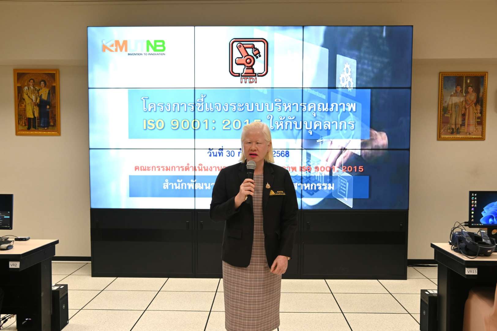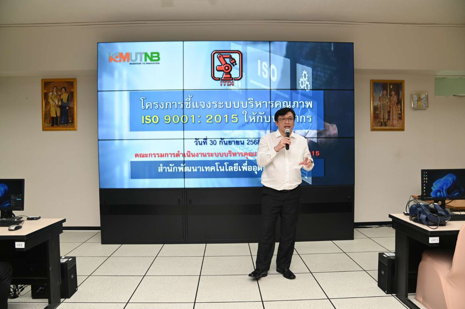 รองศาสตราจารย์ ดร.ชาญชัย ทองประสิทธิ์ ผู้อำนวยการสำนักพัฒนาเทคโนโลยีเพื่ออุตสาหกรรม มหาวิทยาลัยเทคโนโลยีพระจอมเกล้าพระนครเหนือ เป็นประธานกล่าวปิดโครงการชี้แจงระบบบริหารคุณภาพ ISO 9001: 2015 ให้กับบุคลากร สพอ. โดยมีวัตถุประสงค์เพื่อ สร้างความเข้าใจในระบบคุณภาพ เพื่อให้บุคลากรทุกระดับเข้าใจถึง ความสำคัญและโครงสร้างของระบบบริหารคุณภาพ ISO 9001:2015 รวมถึงนโยบายคุณภาพและเป้าหมายขององค์กร สร้างความตระหนักในบทบาทหน้าที่ และความรับผิดชอบของตน ที่มีต่อการรักษาระบบคุณภาพให้มีประสิทธิภาพ ซึ่งรวมถึงการปฏิบัติตามขั้นตอนการทำงานที่กำหนดไว้ การบันทึกข้อมูลและการแก้ไข ส่งเสริมการมีส่วนร่วมและการปรับปรุงอย่างต่อเนื่อง กระตุ้นให้บุคลากรเข้ามามีส่วนร่วม ในการดำเนินงานตามระบบคุณภาพ และเสนอแนะแนวทางในการปรับปรุงการทำงานให้ดีขึ้นอย่างสม่ำเสมอ ซึ่งจะช่วยให้องค์กรสามารถเพิ่มประสิทธิภาพ คุณภาพของผลิตภัณฑ์ และบริการ ลดความผิดพลาดและสร้างความพึงพอใจให้กับลูกค้าได้อย่างยั่งยืน โดยมี ดร.พัชรินทร์ เหสกุล รองผู้อำนวยการฝ่ายบริการวิชาการและกิจการพิเศษ สำนักพัฒนาเทคโนโลยีเพื่ออุตสาหกรรม เป็นประธานกล่าวเปิดโครงการในครั้งนี้ ณ ศูนย์การเรียนรู้และการเรียนการสอนต้นแบบการสร้างเทคโนโลยีความเป็นจริงเสมือน (Virtual Reality Startup Center) สำนักพัฒนาเทคโนโลยีเพื่ออุตสาหกรรม ชั้น 7 อาคารอเนกประสงค์ มหาวิทยาลัยเทคโนโลยีพระจอมเกล้าพระนครเหนือ เมื่อวันที่ 30 กันยายน 2568