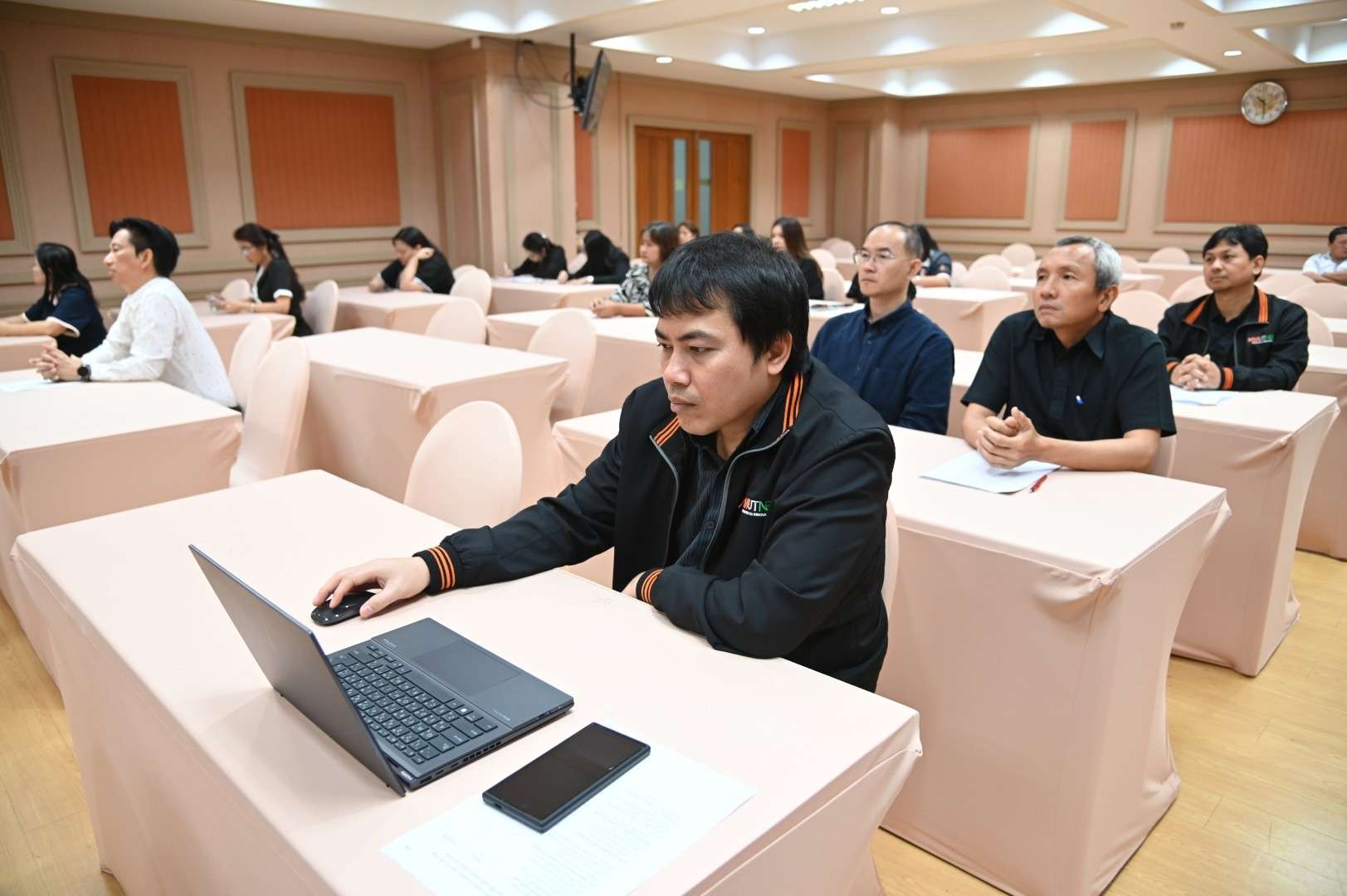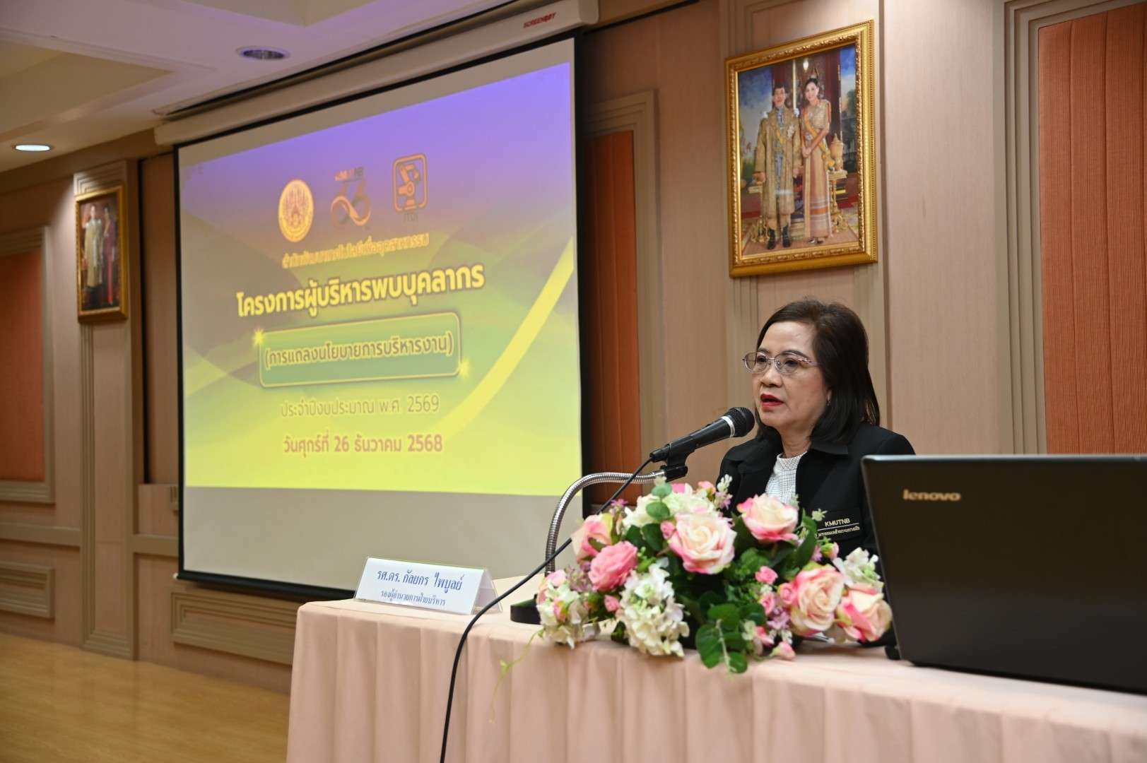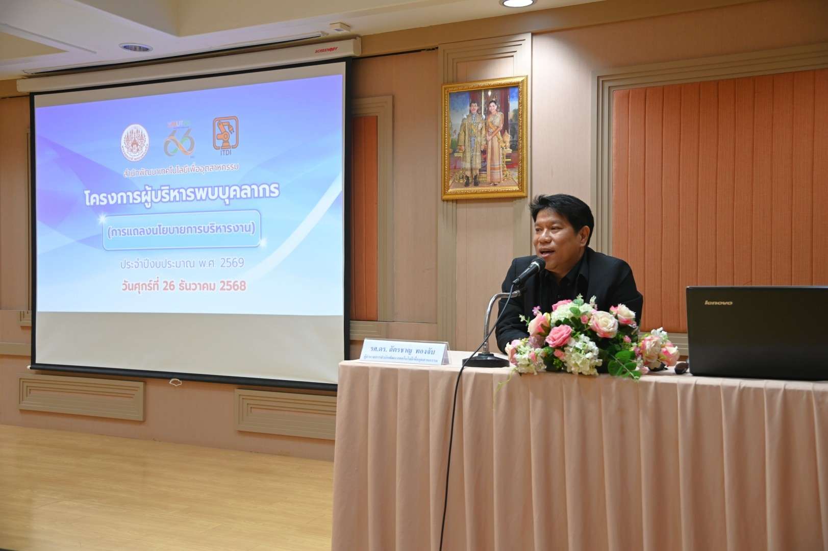 เมื่อวันที่ 26 ธันวาคม 2568 รองศาสตราจารย์ ดร.ฉัตรชาญ ทองจับ ผู้อำนวยการสำนักพัฒนาเทคโนโลยีเพื่ออุตสาหกรรม  ได้เป็นประธานกล่าวเปิดโครงการผู้บริหารพบบุคลากร ประจำปีงบประมาณ พ.ศ. 2569 โดยมีวัตถุประสงค์เพื่อให้ผู้บริหารและบุคลากรได้แลกเปลี่ยนข้อคิดเห็นต่าง ๆ วิธีการดำเนินงานและปัญหาอุปสรรคในการปฏิบัติงาน ซักซ้อมความเข้าใจแนวทางการปฏิบัติงานเพื่อให้ถูกต้องตามระเบียบ ข้อบังคับ ประกาศ มติ คำสั่ง ข้อเสนอแนะต่าง ๆ ของมหาวิทยาลัย ตลอดจนการกำกับดูแล ตรวจสอบ ติดตามการดำเนินโครงการต่าง ๆ พร้อมทั้งซักซ้อมความเข้าใจแนวทางการปฏิบัติงาน และปัญหาอุปสรรคในการปฏิบัติงาน เพื่อให้การปฏิบัติงานมีประสิทธิภาพเพิ่มมากขึ้น ณ ห้อง 814 ชั้น 8 สำนักพัฒนาเทคโนโลยีเพื่ออุตสาหกรรม อาคารอเนกประสงค์ มหาวิทยาลัยเทคโนโลยีพระจอมเกล้าพระนครเหนือ เมื่อวันที่ 26 ธันวาคม 2568