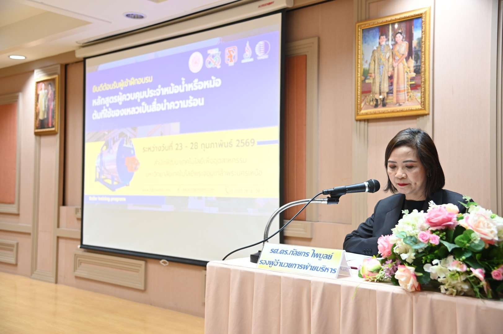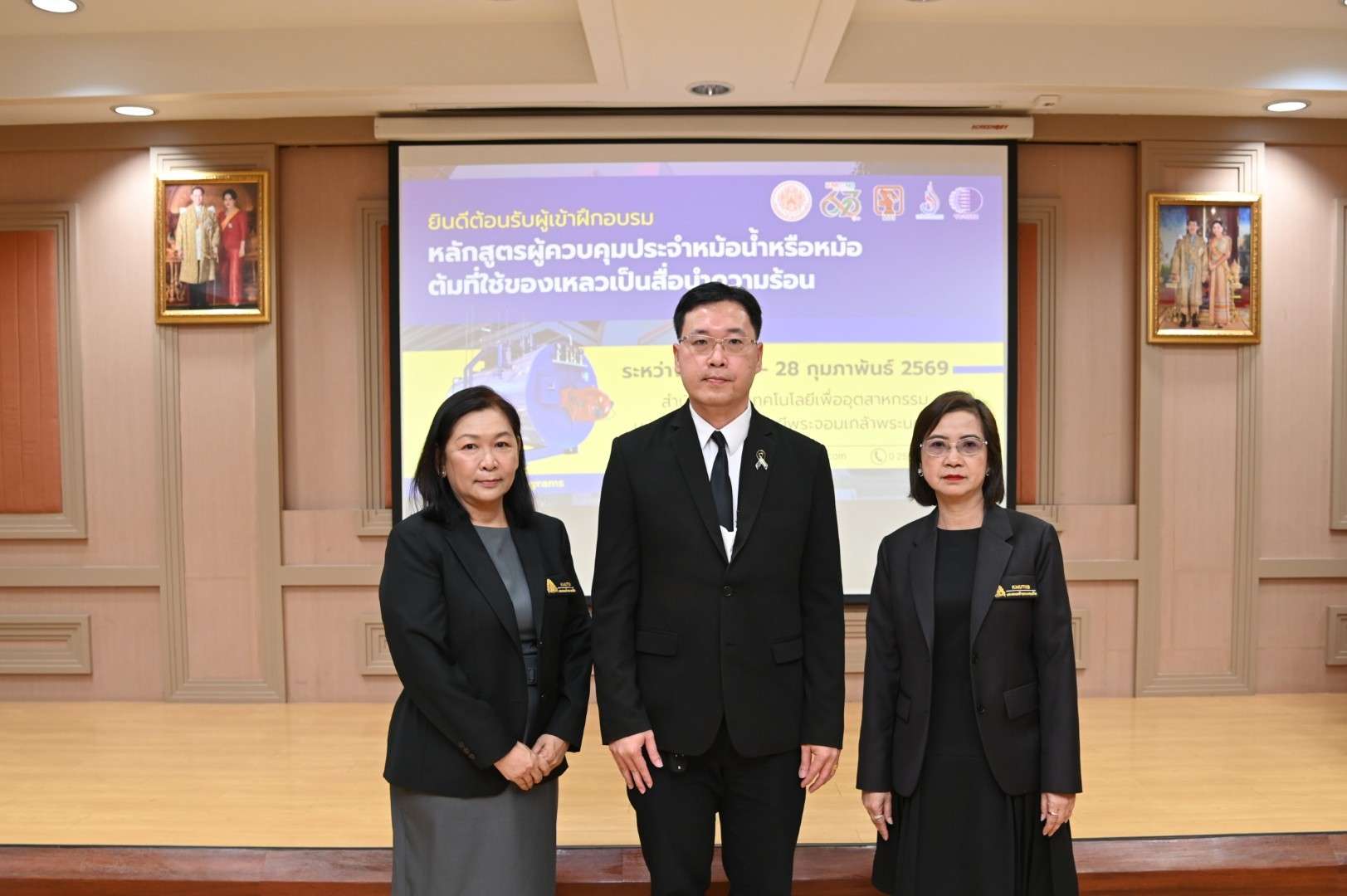 เมื่อวันที่ 23 กุมภาพันธ์ 2569 รองศาสตราจารย์ ดร.กัลยกร ไพบูลย์ รองผู้อำนวยการฝ่ายบริหาร สำนักพัฒนาเทคโนโลยีเพื่ออุตสาหกรรม มหาวิทยาลัยเทคโนโลยีพระจอมเกล้าพระนครเหนือ เป็นประธานในพิธีเปิดโครงการฝึกอบรมหลักสูตร “ผู้ควบคุมประจำหม้อน้ำหรือหม้อต้มที่ใช้ของเหลวเป็นสื่อนำความร้อน” โดยมีวัตถุประสงค์เพื่อให้ความรู้เกี่ยวกับโครงสร้างและหลักการทำงานของหม้อน้ำหรือหม้อต้มที่ใช้ของเหลวเป็นสื่อนำความร้อนตลอดจนอุปกรณ์ส่วนควบคุมต่าง ๆ เพื่อให้ผู้เข้าฝึกอบรมมีความสามารถในการควบคุมการใช้หม้อน้ำหรือหม้อต้มได้อย่างปลอดภัย และมีประสิทธิภาพ รวมถึงตระหนักถึงอุบัติเหตุอันตรายที่อาจเกิดขึ้นของหม้อน้ำหรือหม้อต้มและวิธีการแก้ไขป้องกันอุบัติเหตุดังกล่าว ตลอดจนทราบถึงหน้าที่ความรับผิดชอบของผู้ควบคุมหม้อน้ำหรือหม้อต้มที่จะต้องรับผิดชอบตามกฎหมายที่เกี่ยวข้อง ผู้ที่ผ่านการฝึกอบรมและผ่านการสอบมาตรฐานสามารถนำวุฒิบัตรไปยื่นขอขึ้นทะเบียนเป็นผู้ควบคุมประจำหม้อน้ำต่อกรมโรงงานอุตสาหกรรม กระทรวงอุตสาหกรรมได้ ซึ่งมีกำหนดการฝึกอบรมระหว่างวันที่ 23-28 กุมภาพันธ์ 2569 ณ ห้อง 814 ชั้น 8 สำนักพัฒนาเทคโนโลยีเพื่ออุตสาหกรรม อาคารอเนกประสงค์ มหาวิทยาลัยเทคโนโลยีพระจอมเกล้าพระนครเหนือ โดยมีพิธีเปิดโครงการฝึกอบรม เมื่อวันที่ 23 กุมภาพันธ์ 2569