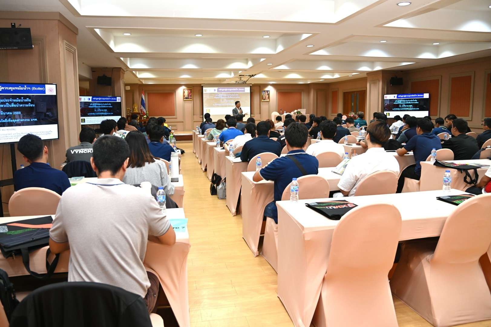 เมื่อวันที่ 23 มีนาคม 2569 รองศาสตราจารย์ ดร.ฉัตรชาญ ทองจับ ผู้อำนวยการสำนักพัฒนาเทคโนโลยีเพื่ออุตสาหกรรม มหาวิทยาลัยเทคโนโลยีพระจอมเกล้าพระนครเหนือ เป็นประธานในพิธีเปิดโครงการฝึกอบรมหลักสูตร “ผู้ควบคุมประจำหม้อน้ำหรือหม้อต้มที่ใช้ของเหลวเป็นสื่อนำความร้อน” โดยมีวัตถุประสงค์เพื่อให้ความรู้เกี่ยวกับโครงสร้างและหลักการทำงานของหม้อน้ำหรือหม้อต้มที่ใช้ของเหลวเป็นสื่อนำความร้อนตลอดจนอุปกรณ์ส่วนควบคุมต่าง ๆ เพื่อให้ผู้เข้าฝึกอบรมมีความสามารถในการควบคุมการใช้หม้อน้ำหรือหม้อต้มได้อย่างปลอดภัย และมีประสิทธิภาพ รวมถึงตระหนักถึงอุบัติเหตุอันตรายที่อาจเกิดขึ้นของหม้อน้ำหรือหม้อต้มและวิธีการแก้ไขป้องกันอุบัติเหตุดังกล่าว ตลอดจนทราบถึงหน้าที่ความรับผิดชอบของผู้ควบคุมหม้อน้ำหรือหม้อต้มที่จะต้องรับผิดชอบตามกฎหมายที่เกี่ยวข้อง ผู้ที่ผ่านการฝึกอบรมและผ่านการสอบมาตรฐานสามารถนำวุฒิบัตรไปยื่นขอขึ้นทะเบียนเป็นผู้ควบคุมประจำหม้อน้ำต่อกรมโรงงานอุตสาหกรรม กระทรวงอุตสาหกรรมได้ ซึ่งมีกำหนดการฝึกอบรมระหว่างวันที่ 23-28 มีนาคม 2569 ณ ห้อง 814 ชั้น 8 สำนักพัฒนาเทคโนโลยีเพื่ออุตสาหกรรม อาคารอเนกประสงค์ มหาวิทยาลัยเทคโนโลยีพระจอมเกล้าพระนครเหนือ