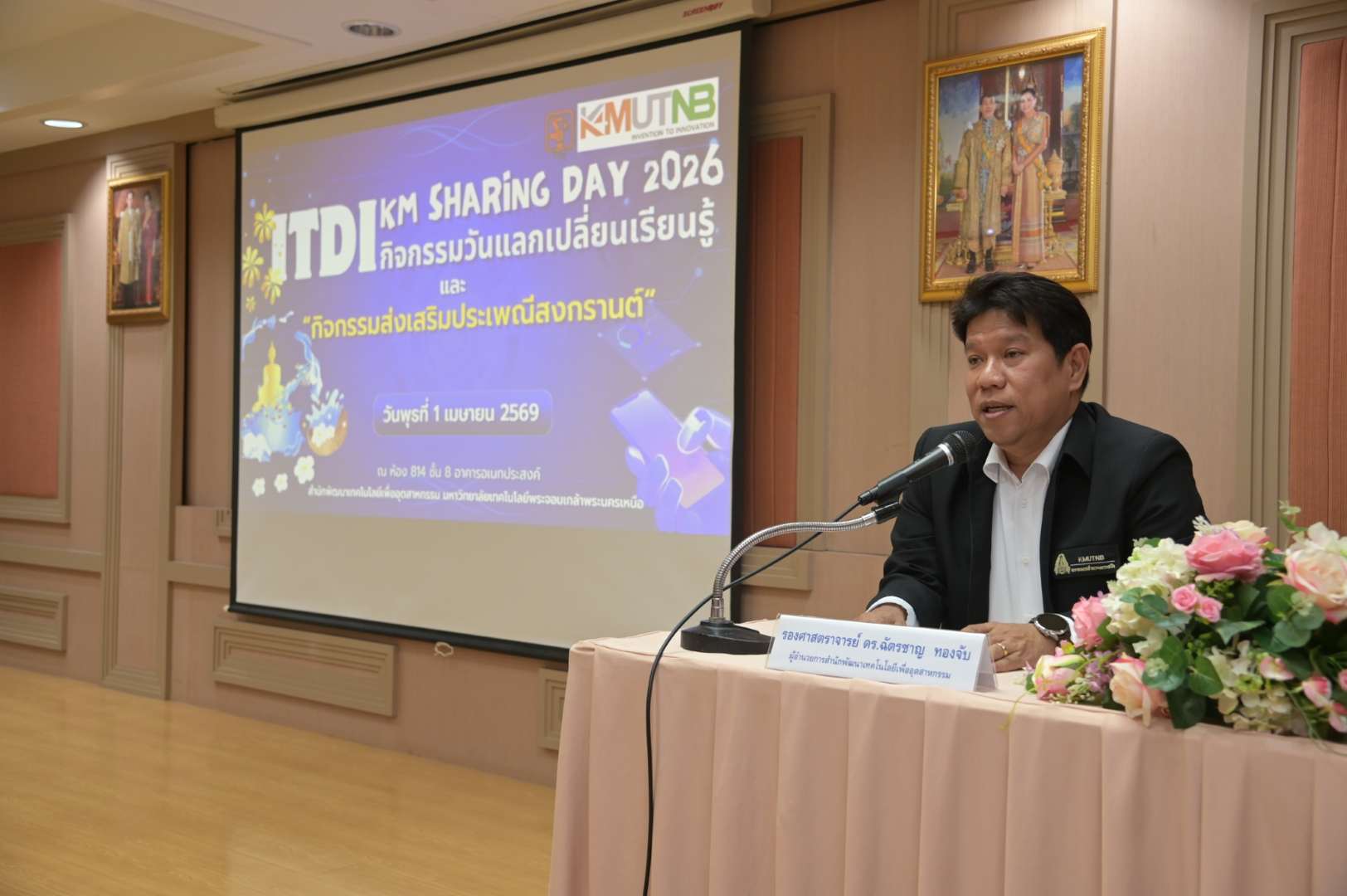 เมื่อวันที่ 1 เมษายน 2569 รองศาสตราจารย์ ดร.ฉัตรชาญ ทองจับ ผู้อำนวยการสำนักพัฒนาเทคโนโลยีเพื่ออุตสาหกรรม เป็นประธานในพิธีเปิดโครงการแลกเปลี่ยนการเรียนรู้ ITDI KM Sharing Day 2026 โดยมีวัตถุประสงค์เพื่อให้มีเวทีในการแลกเปลี่ยนเรียนรู้ของผู้บริหารและบุคลากรของสำนักมีความเข้าใจและมีส่วนร่วมในการจัดการองค์ความรู้ รวบรวมองค์ความรู้ที่กระจัดกระจายอยู่ในตัวบุคคลมาจัดเก็บให้เป็นลายลักษณ์อักษรเพื่อให้บุคลากรสามารถเข้าถึงและนำมาทดลองปฏิบัติได้ จากนั้นให้เกียรติเป็นประธานในพิธีเปิดงานสืบสานประเพณีสงกรานต์ ประจำปี พ.ศ. 2569 ของสำนักพัฒนาเทคโนโลยีเพื่ออุตสาหกรรม โดยมีผู้บริหาร และบุคลากรของสำนักเข้าร่วมกิจกรรมสรงน้ำพระพุทธรูป เพื่อความเป็นสิริมงคลของชีวิตและเป็นการเริ่มต้นชีวิตที่ดีในเทศกาลปีใหม่ไทย ณ ห้อง 814 ชั้น 8 สำนักพัฒนาเทคโนโลยีเพื่ออุตสาหกรรม อาคารอเนกประสงค์ มหาวิทยาลัยเทคโนโลยีพระจอมเกล้าพระนครเหนือ