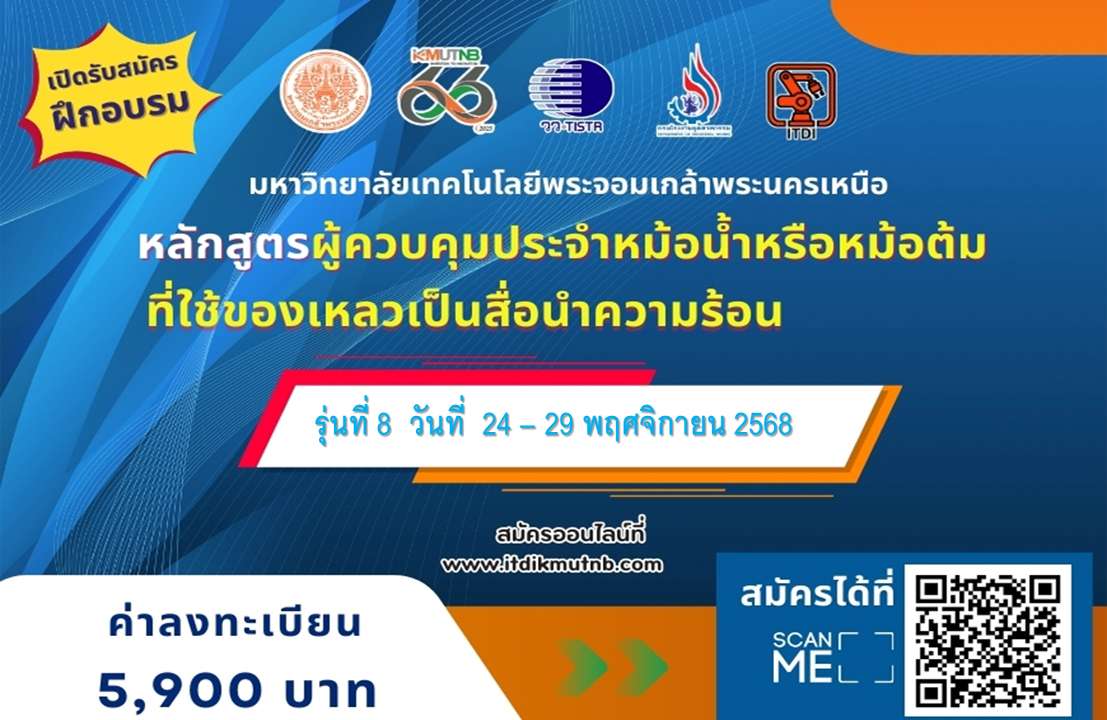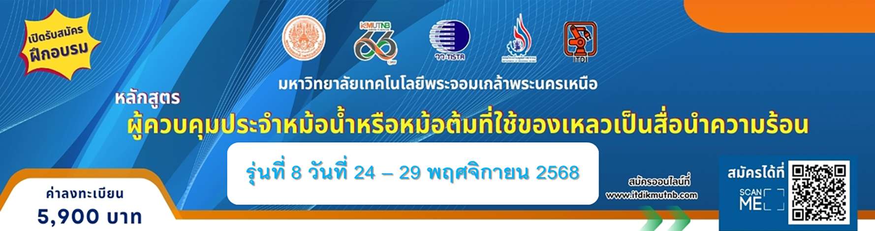 สำนักพัฒนาเทคโนโลยีเพื่ออุตสาหกรรม มจพ. จัดโครงการฝึกอบรมหลักสูตร “ผู้ควบคุมประจำหม้อน้ำหรือหม้อต้มที่ใช้ของเหลวเป...