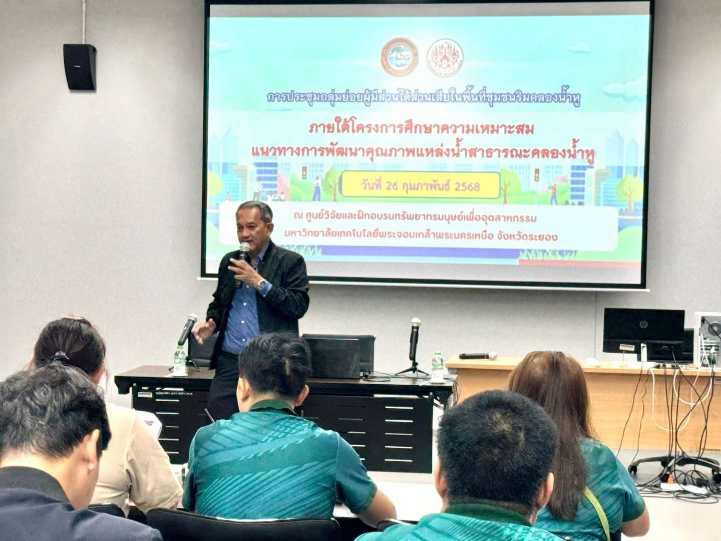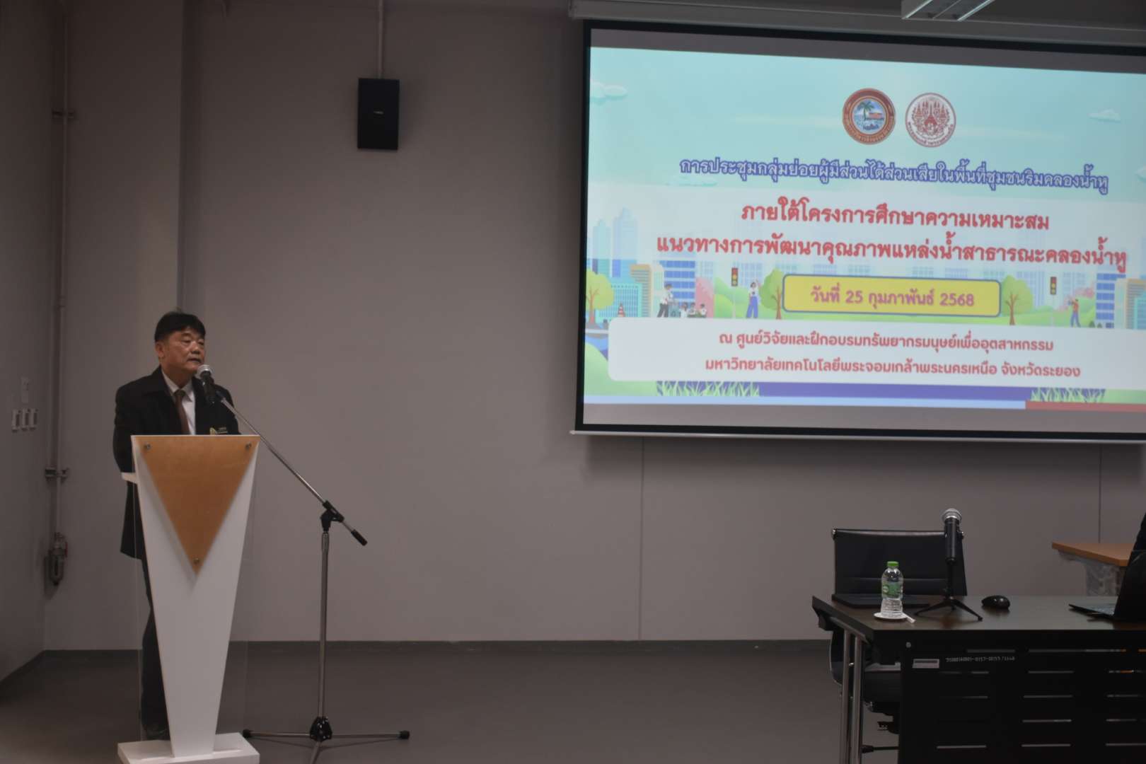 นางณิชาพร คุ้มท้วม ผู้อำนวยการกองทรัพยากรธรรมชาติและสิ่งแวดล้อม องค์การบริหารส่วนจังหวัดระยอง เป็นประธานกล่าวเปิดการประชุมกลุ่มย่อยผู้มีส่วนได้ส่วนเสียในพื้นที่ชุมชนริมคลองน้ำหู ภายใต้โครงการศึกษาความเหมาะสมแนวทางการพัฒนาคุณภาพแหล่งน้ำสาธารณะคลองน้ำหู พร้อม นายประสานต์ พฤกษาชาติ อดีตรองนายกองค์การบริหารส่วนจังหวัดระยอง รองศาสตราจารย์ ดร.ชาญชัย ทองประสิทธิ์ ผู้อำนวยการสำนักพัฒนาเทคโนโลยีเพื่ออุตสาหกรรม มจพ. และ ผู้ช่วยศาสตราจารย์ ดร. สมใจ เพียรประสิทธิ์ ผู้อำนวยการศูนย์วิจัยและฝึกอบรมทรัพยากรมนุษย์เพื่ออุตสาหกรรม เข้าร่วมเปิดการประชุมในครั้งนี้ด้วย โดยการประชุมมีวัตถุประสงค์เพื่อจัดประชุมกลุ่มย่อยผู้มีส่วนได้ส่วนเสีย ในพื้นที่ชุมชนริมคลองน้ำหู จังหวัดระยอง ในการหาแนวทางการพัฒนาคุณภาพแหล่งน้ำสาธารณะคลองน้ำหู  ณ ศูนย์วิจัยและฝึกอบรมทรัพยากรมนุษย์เพื่ออุตสาหกรรม (มาบตาพุด) มหาวิทยาลัยเทคโนโลยีพระจอมเกล้าพระนครเหนือ เมื่อวันที่ 25 – 26 กุมภาพันธ์ 2568