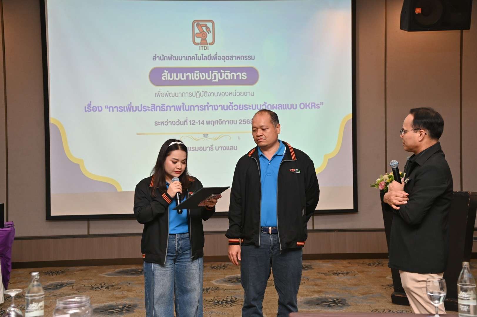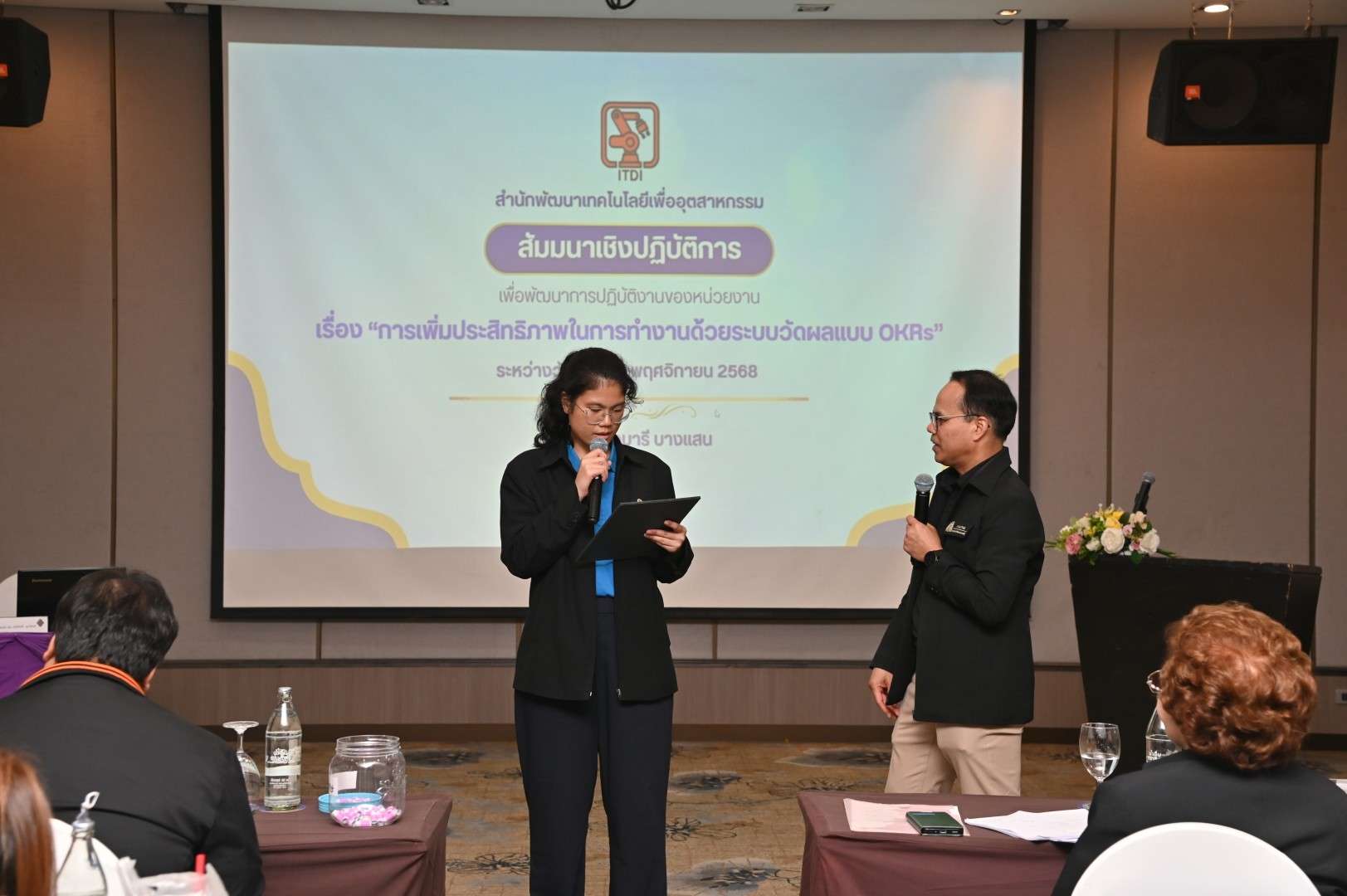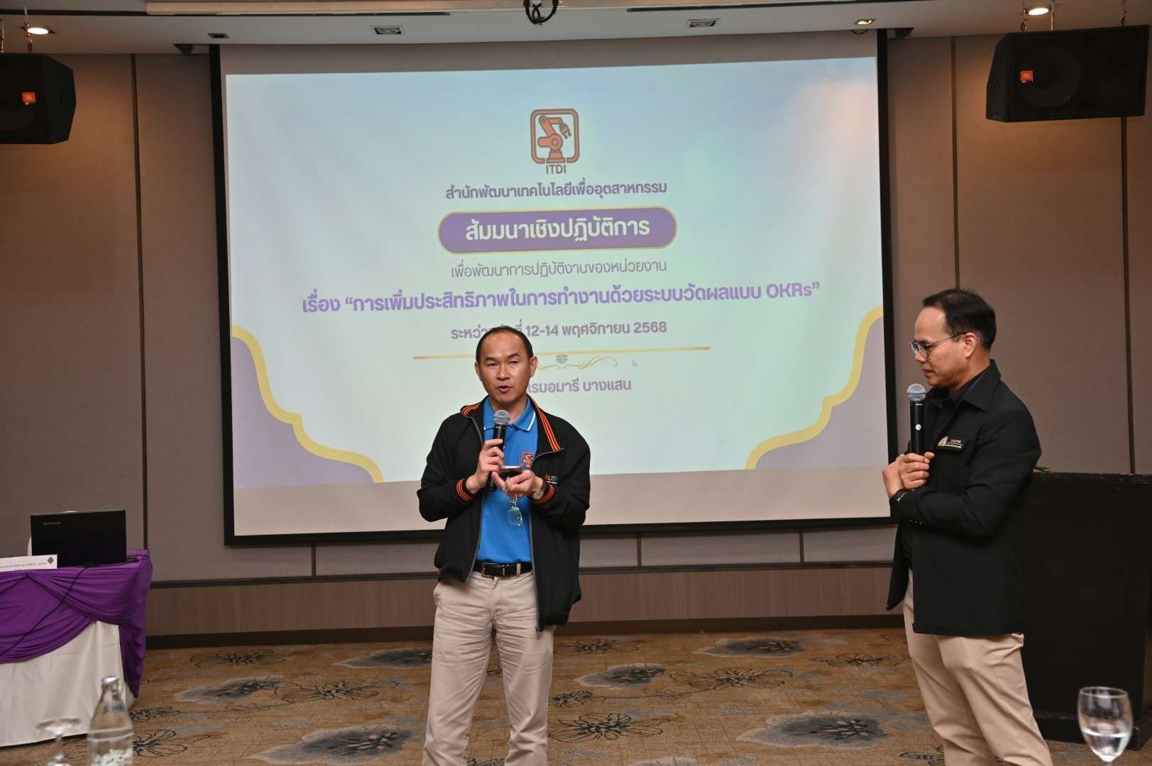 รองศาสตราจารย์ ดร.ชาญชัย ทองประสิทธิ์ ผู้อำนวยการสำนักพัฒนาเทคโนโลยีเพื่ออุตสาหกรรม มหาวิทยาลัยเทคโนโลยีพระจอมเกล้าพระนครเหนือ เป็นประธานกล่าวเปิดโครงการสัมมนาเชิงปฏิบัติการ เรื่อง "การเพิ่มประสิทธิภาพในการทำงานด้วยระบบวัดผลแบบ OKRs" โดยได้รับเกียรติจาก รองศาสตราจารย์ เรือโท ดร. ทวีศักดิ์ รูปสิงห์ อาจารย์ประจำคณะบริหารธุรกิจ มหาวิทยาลัยเทคโนโลยีพระจอมเกล้าพระนครเหนือมาเป็นวิทยากรการบรรยายในครั้งนี้ โดยมีวัตถุประสงค์เพื่อเตรียมความพร้อมรองรับการพัฒนาศักยภาพในการให้บริการวิชาการ เสริมสร้างประสบการณ์และยกระดับศักยภาพในการปฏิบัติงานของบุคลากรให้ก้าวทันต่อสภาพสถานการณ์ปัจจุบัน ณ โรงแรมอมารี บางแสน จังหวัดชลบุรี  ซึ่งมีกำหนดการสัมมนา ระหว่างวันที่ 12-14 พฤศจิกายน 2568