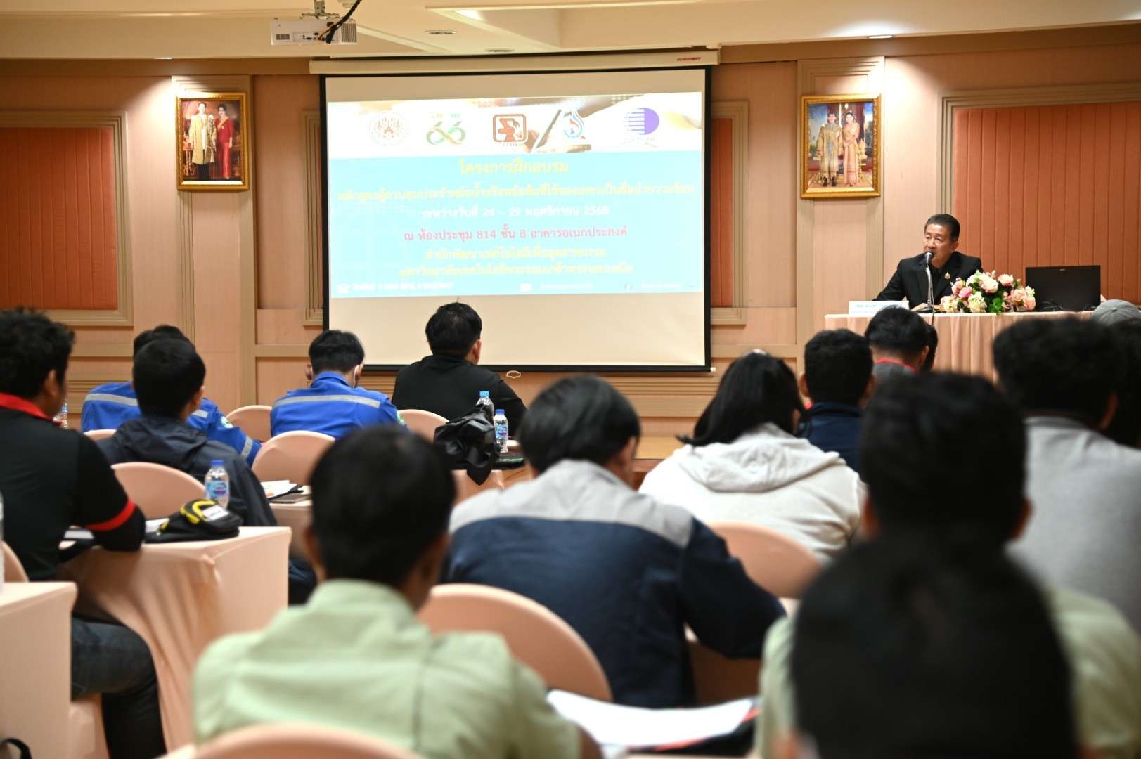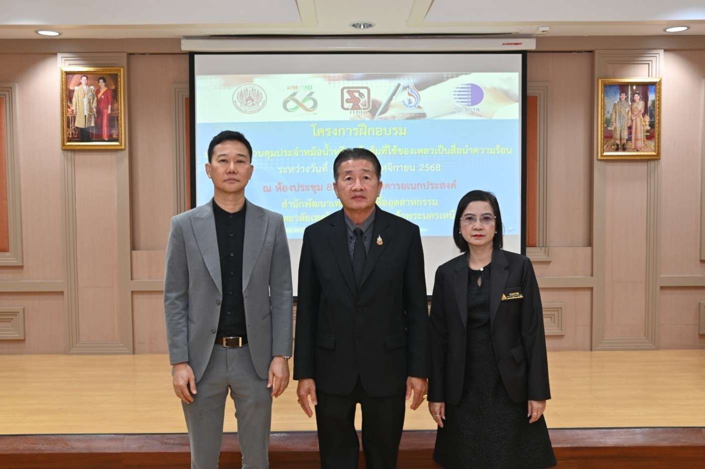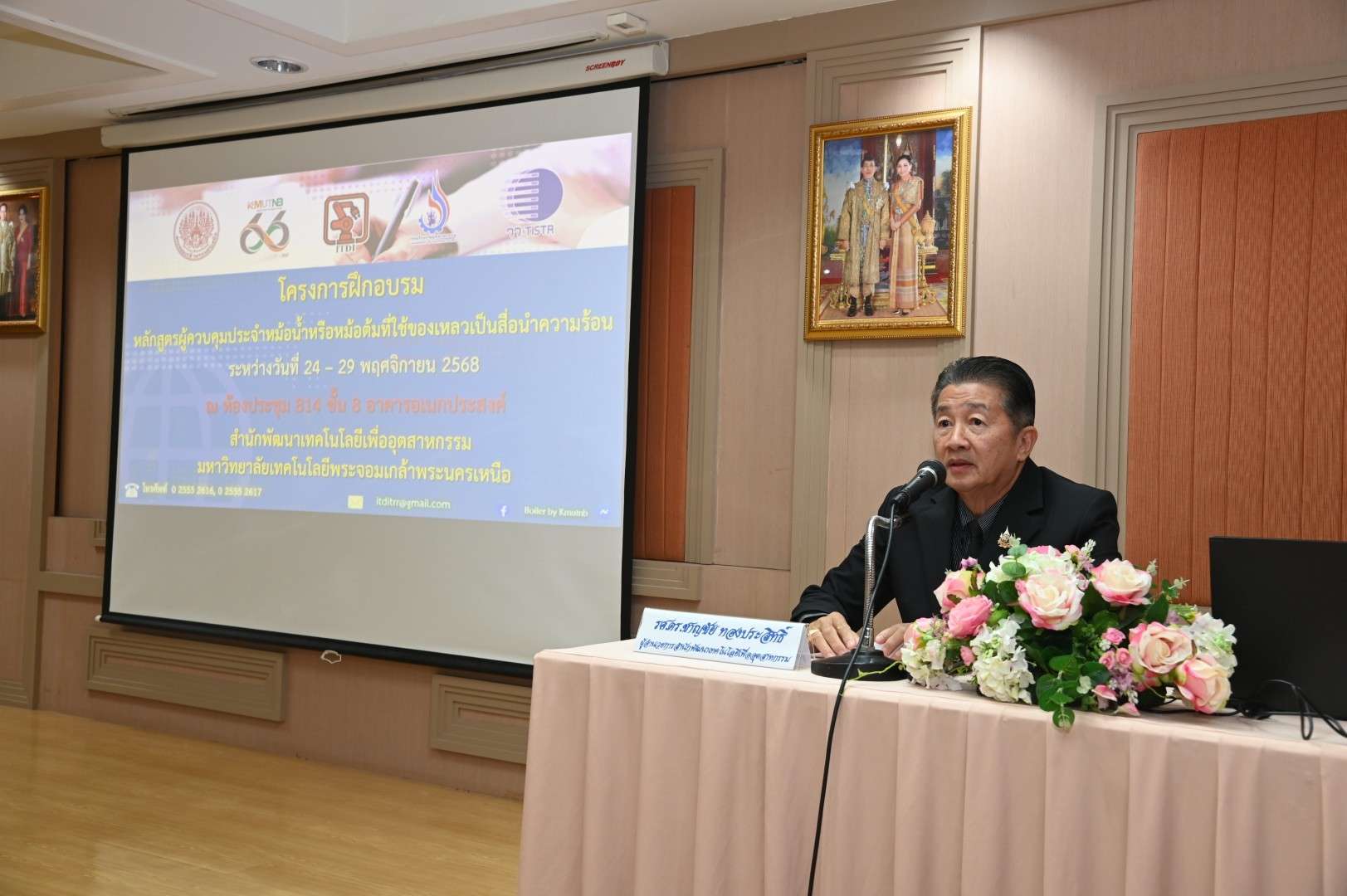 รองศาสตราจารย์ ดร.ชาญชัย ทองประสิทธิ์ ผู้อำนวยการสำนักพัฒนาเทคโนโลยีเพื่ออุตสาหกรรม มหาวิทยาลัยเทคโนโลยีพระจอมเกล้าพระนครเหนือ เป็นประธานในพิธีเปิดโครงการฝึกอบรมหลักสูตร “ผู้ควบคุมประจำหม้อน้ำหรือหม้อต้มที่ใช้ของเหลวเป็นสื่อนำความร้อน” โดยมีวัตถุประสงค์เพื่อให้ความรู้เกี่ยวกับโครงสร้างและหลักการทำงานของหม้อน้ำหรือหม้อต้มที่ใช้ของเหลวเป็นสื่อนำความร้อนตลอดจนอุปกรณ์ส่วนควบคุมต่าง ๆ เพื่อให้ผู้เข้าฝึกอบรมมีความสามารถในการควบคุมการใช้หม้อน้ำหรือหม้อต้มได้อย่างปลอดภัย และมีประสิทธิภาพ รวมถึงตระหนักถึงอุบัติเหตุอันตรายที่อาจเกิดขึ้นของหม้อน้ำหรือหม้อต้มและวิธีการแก้ไขป้องกันอุบัติเหตุดังกล่าว ตลอดจนทราบถึงหน้าที่ความรับผิดชอบของผู้ควบคุมหม้อน้ำหรือหม้อต้มที่จะต้องรับผิดชอบตามกฎหมายที่เกี่ยวข้อง ผู้ที่ผ่านการฝึกอบรมและผ่านการสอบมาตรฐานสามารถนำวุฒิบัตรไปยื่นขอขึ้นทะเบียนเป็นผู้ควบคุมประจำหม้อน้ำต่อกรมโรงงานอุตสาหกรรม กระทรวงอุตสาหกรรมได้ ซึ่งมีกำหนดการฝึกอบรมระหว่างวันที่ 24-29 พฤศจิกายน 2568 ณ ห้อง 814 ชั้น 8 สำนักพัฒนาเทคโนโลยีเพื่ออุตสาหกรรม อาคารอเนกประสงค์ มหาวิทยาลัยเทคโนโลยีพระจอมเกล้าพระนครเหนือ โดยมีพิธีเปิดโครงการฝึกอบรม เมื่อวันที่ 24 พฤศจิกายน 2568