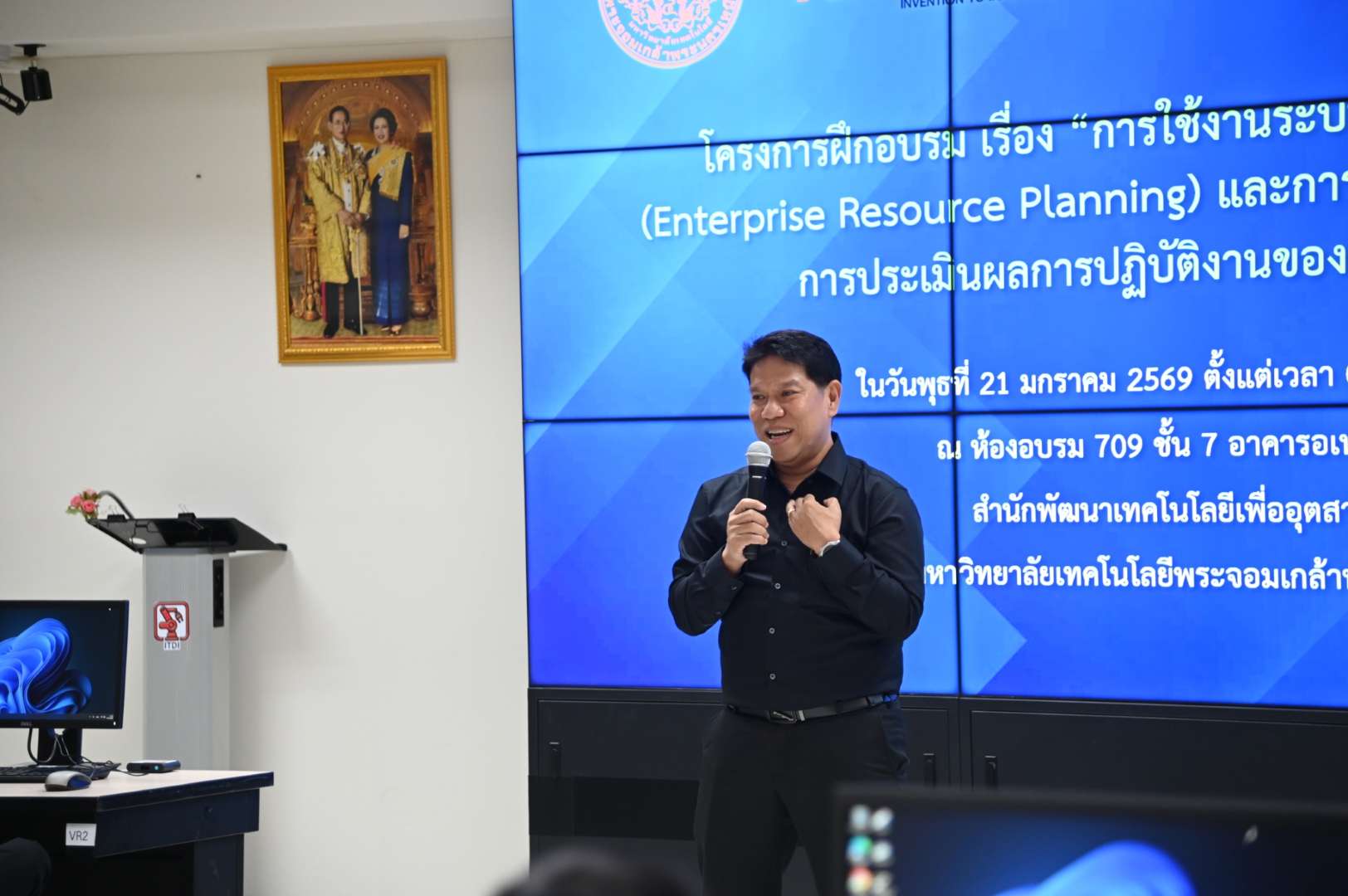 เมื่อวันที่ 21 มกราคม 2569  รองศาสตราจารย์ ดร.ฉัตรชาญ ทองจับ ผู้อำนวยการสำนักพัฒนาเทคโนโลยีเพื่ออุตสาหกรรม ได้ให้เกียรติเป็นประธานในพิธีเปิดโครงการอบรม เรื่อง “การใช้งานระบบ KMUTNB – ERP (Enterprise Resource Planning) และ การใช้ระบบสารสนเทศสำหรับการประเมินผลการปฏิบัติงานของบุคลากร (PPES)” โดยมี ผู้บริหาร และบุคลากร ได้เข้าร่วมการอบรม มีวัตถุประสงค์ในการจัดอบรมเพื่อให้บุคลากรของสำนักมีความรู้ความเข้าใจ และสามารถใช้งานระบบ KMUTNB – ERP (Enterprise Resource Planning) และการใช้ระบบสารสนเทศสำหรับการประเมินผลการปฏิบัติงานของบุคลากร (PPES) ได้อย่างถูกต้องและมีประสิทธิภาพ โดยการอบรบในครั้งนี้มีวิทยากรในการบรรยาย ได้แก่
