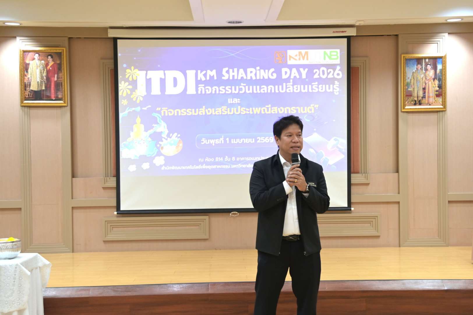 เมื่อวันที่ 1 เมษายน 2569 รองศาสตราจารย์ ดร.ฉัตรชาญ ทองจับ ผู้อำนวยการสำนักพัฒนาเทคโนโลยีเพื่ออุตสาหกรรม เป็นประธานในพิธีเปิดโครงการแลกเปลี่ยนการเรียนรู้ ITDI KM Sharing Day 2026 โดยมีวัตถุประสงค์เพื่อให้มีเวทีในการแลกเปลี่ยนเรียนรู้ของผู้บริหารและบุคลากรของสำนักมีความเข้าใจและมีส่วนร่วมในการจัดการองค์ความรู้ รวบรวมองค์ความรู้ที่กระจัดกระจายอยู่ในตัวบุคคลมาจัดเก็บให้เป็นลายลักษณ์อักษรเพื่อให้บุคลากรสามารถเข้าถึงและนำมาทดลองปฏิบัติได้ จากนั้นให้เกียรติเป็นประธานในพิธีเปิดงานสืบสานประเพณีสงกรานต์ ประจำปี พ.ศ. 2569 ของสำนักพัฒนาเทคโนโลยีเพื่ออุตสาหกรรม โดยมีผู้บริหาร และบุคลากรของสำนักเข้าร่วมกิจกรรมสรงน้ำพระพุทธรูป เพื่อความเป็นสิริมงคลของชีวิตและเป็นการเริ่มต้นชีวิตที่ดีในเทศกาลปีใหม่ไทย ณ ห้อง 814 ชั้น 8 สำนักพัฒนาเทคโนโลยีเพื่ออุตสาหกรรม อาคารอเนกประสงค์ มหาวิทยาลัยเทคโนโลยีพระจอมเกล้าพระนครเหนือ